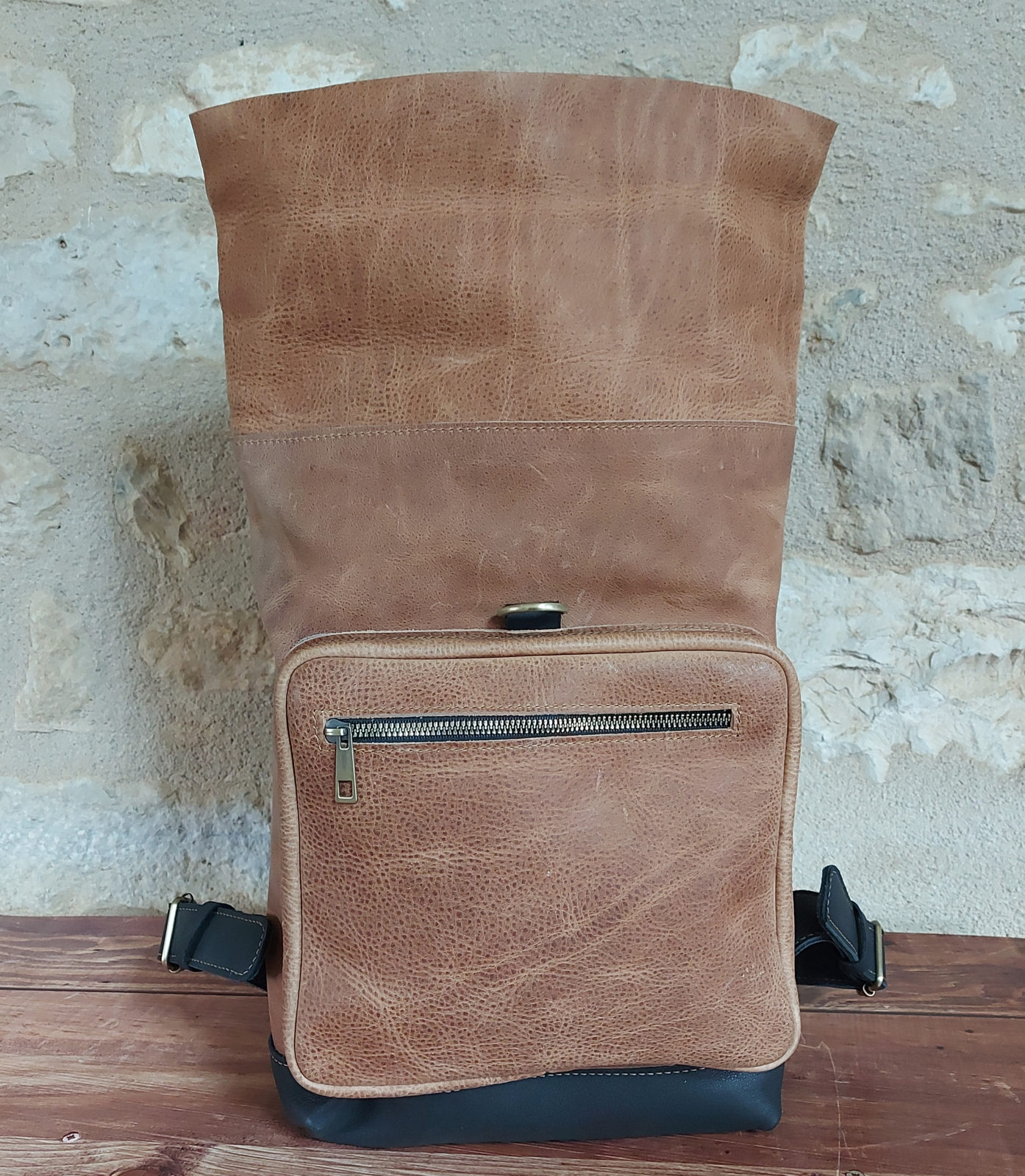 Sac à dos mixte en cuir. 3 compartiments, un grain magnifique, pratique et intemporel. Pièce unique.