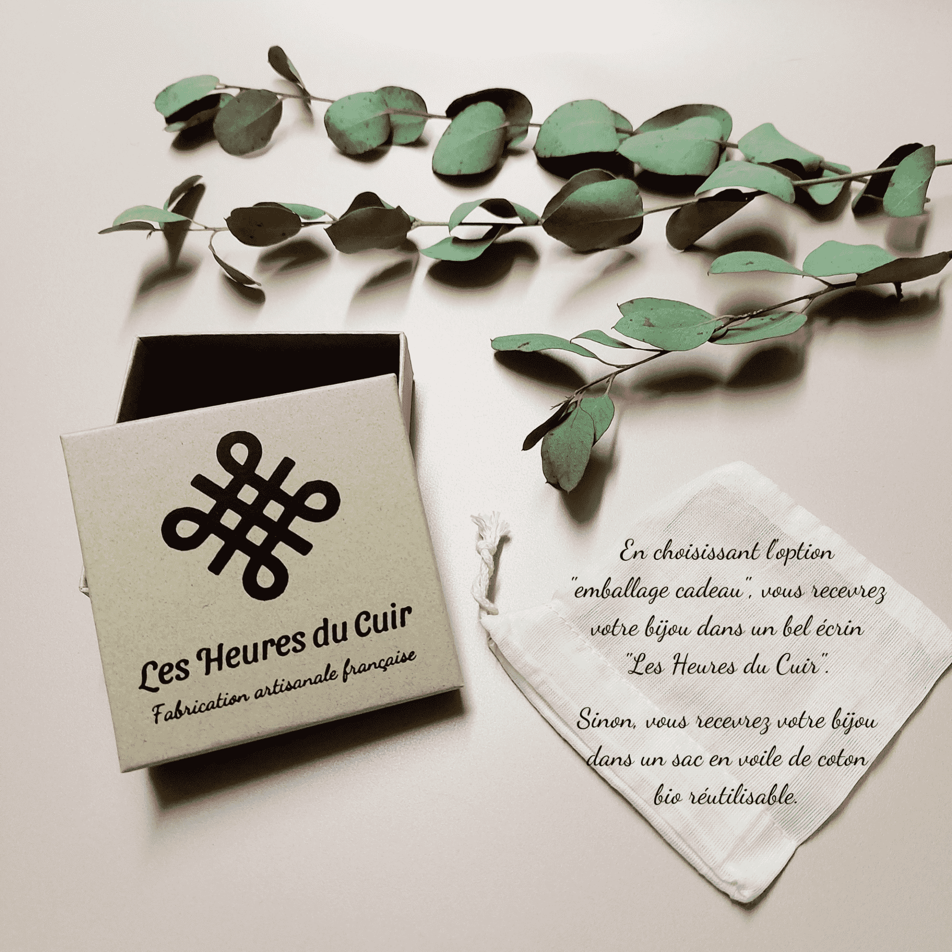 - Sélectionnez l’option « emballage cadeau », vous recevrez le bracelet dans un écrin « Les Heures du Cuir » (certifié éco-cert) effet garanti !